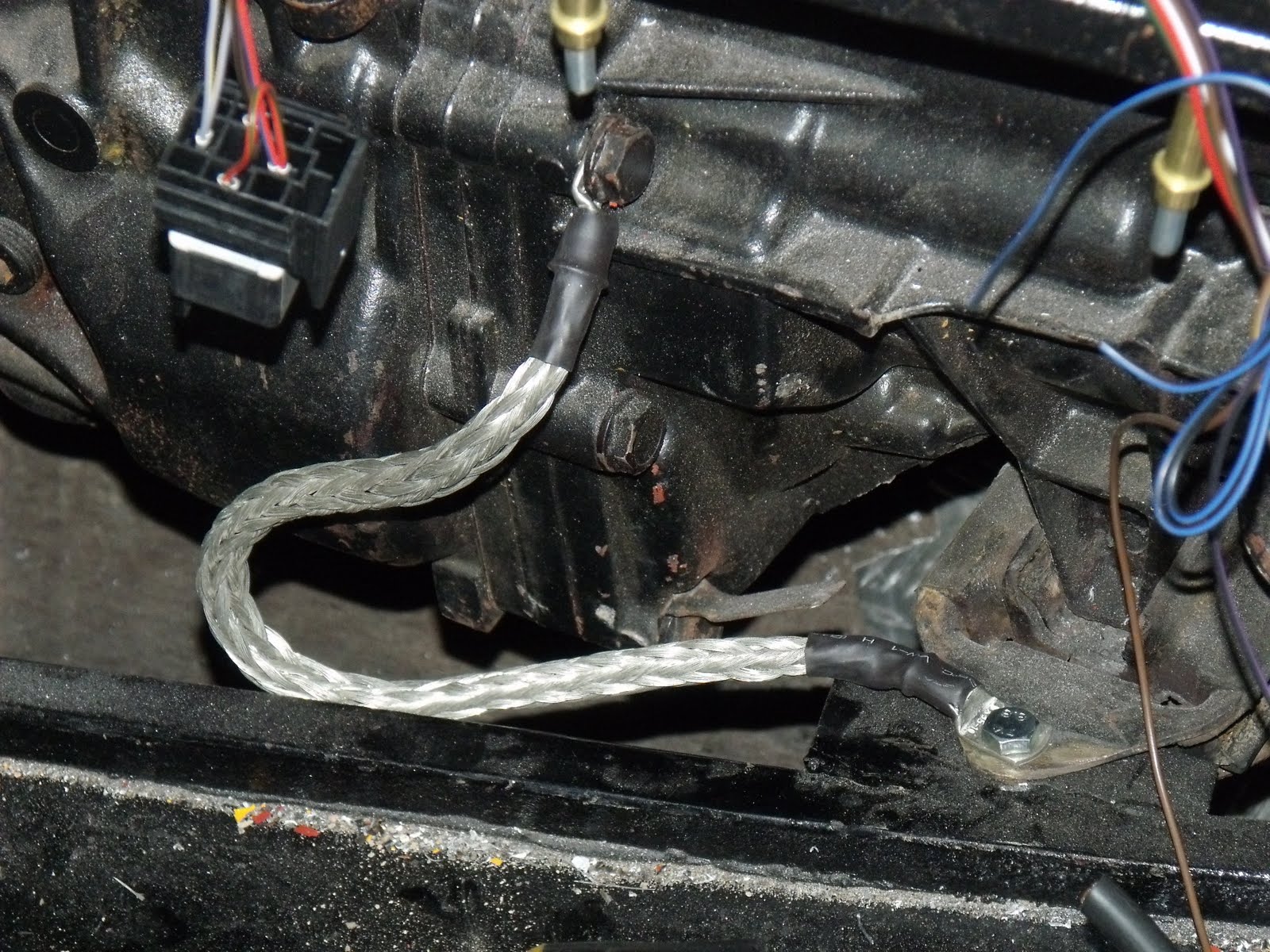 after a little work the earth bond is fitted between the gearbox and chassis.